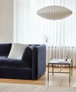 Die Nelson Bubble Cigar Pendelleuchte L von Hay wurde von George Nelson entworfen und ist eine luftig leichte Pendelleuchte deren Form an eine Zigarre erinnert. Der amerikanische Designer George Nelson entwarf die schöne Pendelleuchte bereits 1947, nachdem er sich von einem Paar schwedischer Seiden-Pendelleuchten inspirieren ließ. Es stellte sich heraus, dass diese einen sehr komplizierten Herstellungsprozess hatten und Nelson wollte daher eine eigene Version entwickeln. Die Idee zum Design der Bubble Pendelleuchte entstand, nachdem er Schiffe sah, die unter einem dünnen, spinnennetzartigen Schutzgewebe gelagert wurden, das mit einem speziellen Spray über die Schiffe aufgetragen wurde. Innerhalb eines Tages hatte Nelson einen runden Metallrahmen hergestellt und Kontakt mit der Firma aufgenommen, die das Spray herstellte. Der Rest ist, wie man sagt, Geschichte. Das Ergebnis war die einzigartige Bubble Pendelleuchte, die durch ihren dünnen, gleichmäßigen Stoff einen sanften Glanz verbreitet. Die Pendelleuchte war ein echter Erfolg und ist seitdem eine der ikonischsten Leuchten von George Nelson. Die Bubble Pendelleuchte ist in verschiedenen Formen und Größen sowie als Wandleuchte erhältlich.